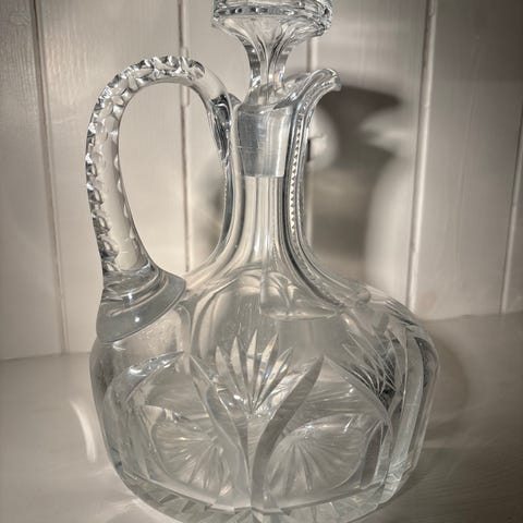 Selger en punchbolle med 6 små krus og øse i glass fra Bohemia Crystalex, håndlaget i Tsjekkia. Ingenting er knust eller har hakker, pent og lite brukt. Både krusene og bollen har gulldetaljer. Bollen er 21 cm høy og 19 cm i diameter. Krus er 8 cm høy og 6 cm bred