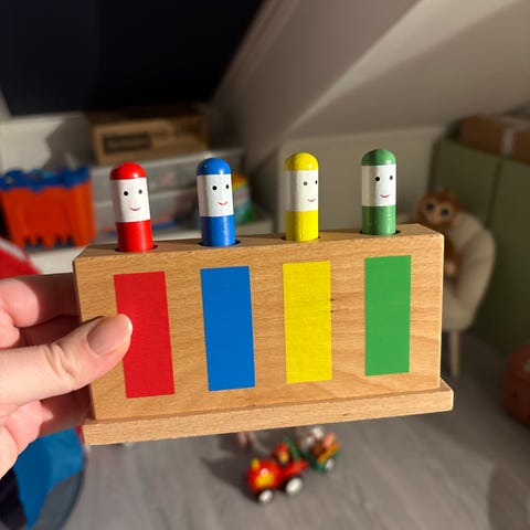 Fra kjent amerikanske merke Guidecraft. Veldig bra for å øve småbarns fin motoriske ferdighet.