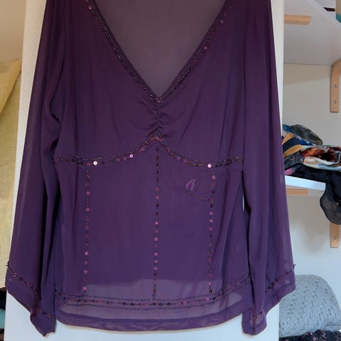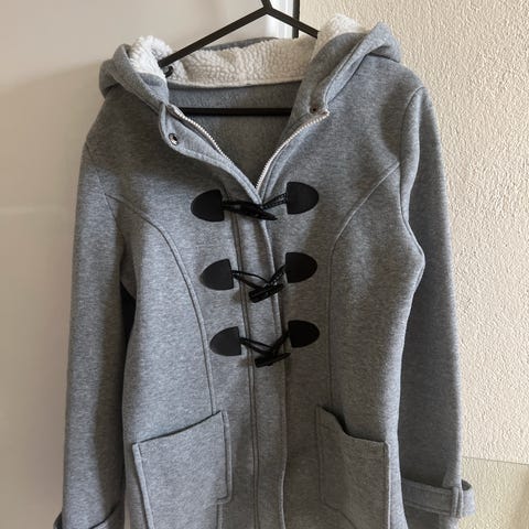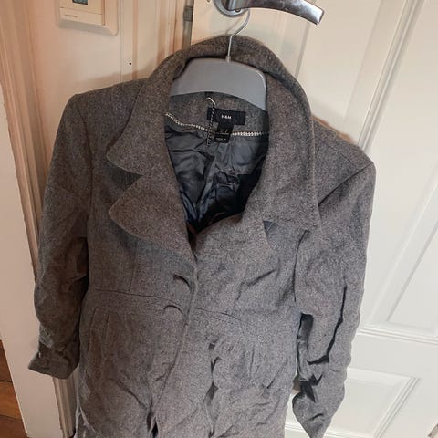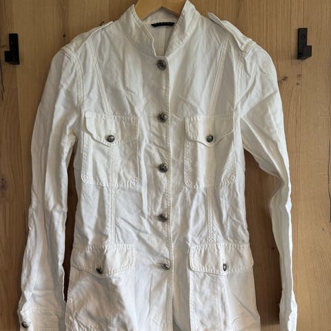 Selges rimelig da den mangler to knapper nederst på en av ermene. Hull i fôr i armhule på begge sider og i en av lommene. Synes ikke fra utsiden.