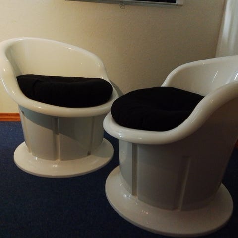 2 stk plaststol i retrodesign designet av Hagberg for IKEA i 1999.