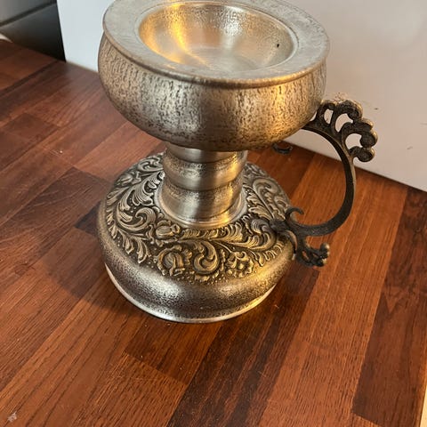 Den er 10x10 cm. Laget i Sheffield England. Er ikke brukt. Ca. 30 år gammel. Kjøper betaler porto.