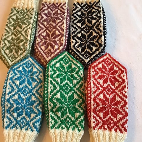 Strikket i 100% ull i fargene offwhite og lys brun.
