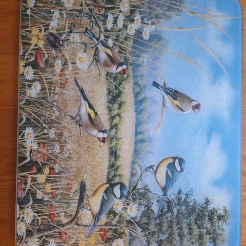 Dette serveringsbrettet lyser litt opp i "skogen" av brett laget av tre :-)