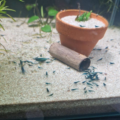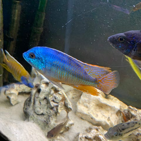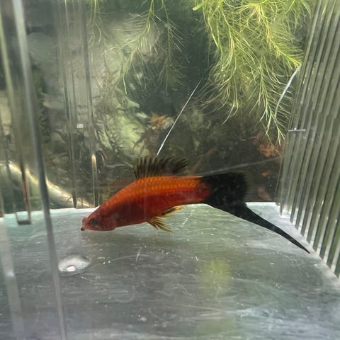 Det selges et stort utvalg av fisk. Sverdhaler, , mollies i.