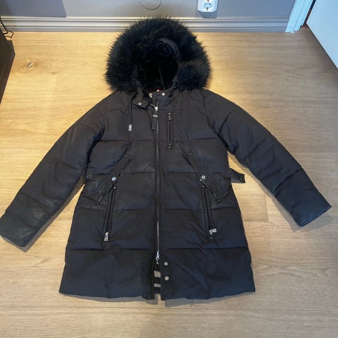 Lite brukt Vannucci dunjakke med pels rundt hetten som er til å ta av( usikker på om den er ekte eller fake)