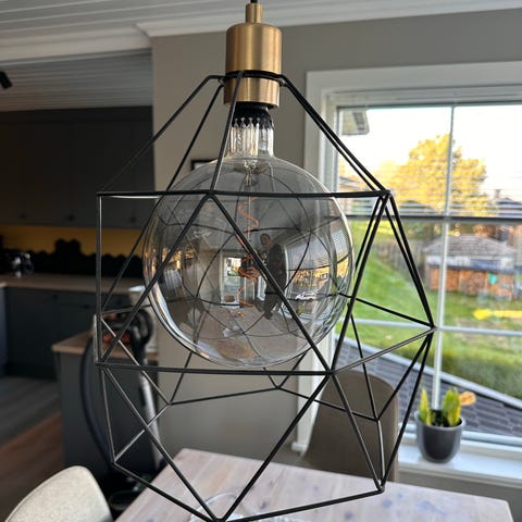 Taklampe pendel med metallfatning og sort tvunnet tekstilkabel. Lampen har rund takdeksel og E27-fatning i metall. Passer til standard lyspærer med E27-sokkel. Kan brukes som enkel pendellampe over bord, i stue, gang eller andre rom der man ønsker nedhengt belysning. Lyspære følger ikke nødvendigvis med og må eventuelt kjøpes separat.