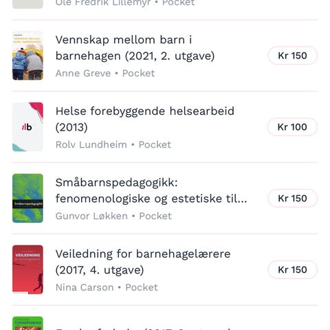 Fagbøker selges, pris står under hvert bilde. Ved bruk av ‘fiks ferdig’, må resterende beløp sendes på vipps ved kjøp.