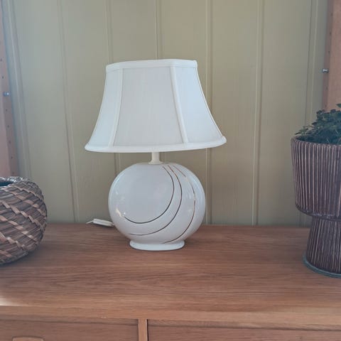 Retro porselen bordlampe m/motiv