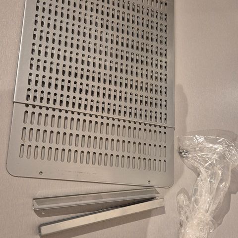 Passer til nesten alle stekeovner. Monteres uten bruk av verktøy eller skruer. Monteres ved hjelp av spesiallim som tåler høye temperaturer. Enkel å fjerne i forbindelse med rengjøring osv. Stekeovnsgitteret er konstruert slik at varmen ikke transporteres til gitteret.