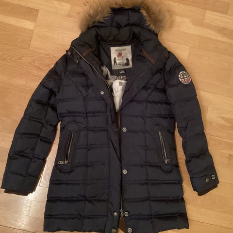 Rød dunjakke med 80% gåsedun/20%fjær selges.