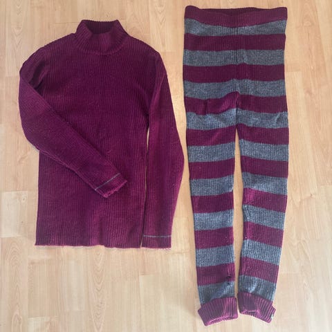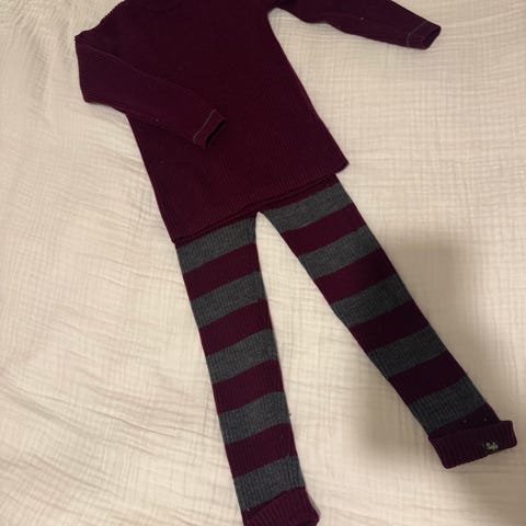 Pent brukt uten hull eller flekker. Oppleves stor i størrelsen. Kan brettes opp på armer og ben og derfor brukes flere sesonger. Kan sendes.