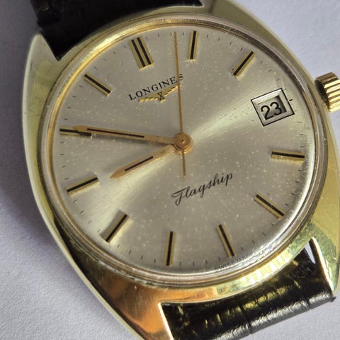 Ta et skritt tilbake i tid med denne vakre Vintage "Longines" Conquest Automatic herreklokken. Med sitt tidløse design og pålitelige ytelse vil denne klokken være en flott tillegg til enhver klokkesamling.