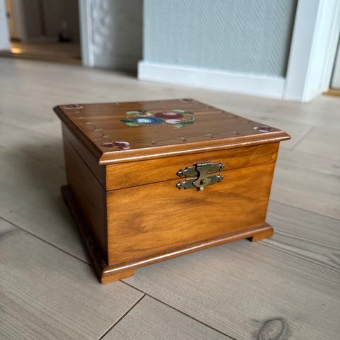 1 stk av furu: lengde ca. 20cm, bredde: 19,5cm, høyde: 11,5cm - 130 kr