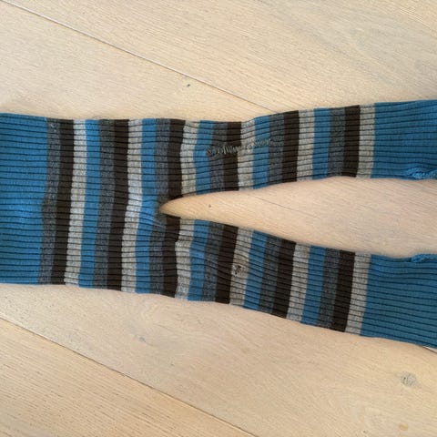 Pent brukt ullbukse i blå og grønn-farger fra nøstebarn i strl 86\92. Varer lenger pga nedbrett på bena.