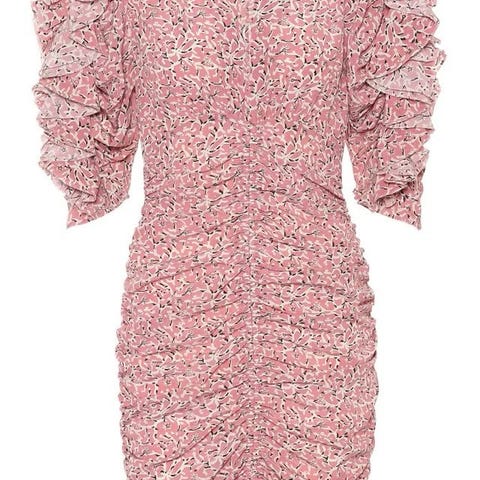 This 'Tharya' mini dress has a carefree, bohemian spirit - in other words, it's quintessentially Isabel Marant. It's cut from silk crepe de chine decorated with marble swirls and falls to a fluttery asymmetric hem. Style yours with over-the-knee boots, as seen on the Fall '23 runway.
