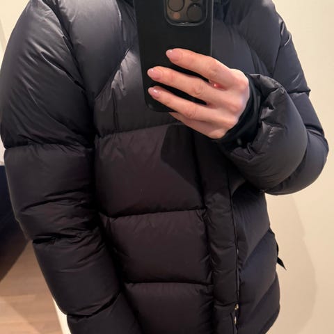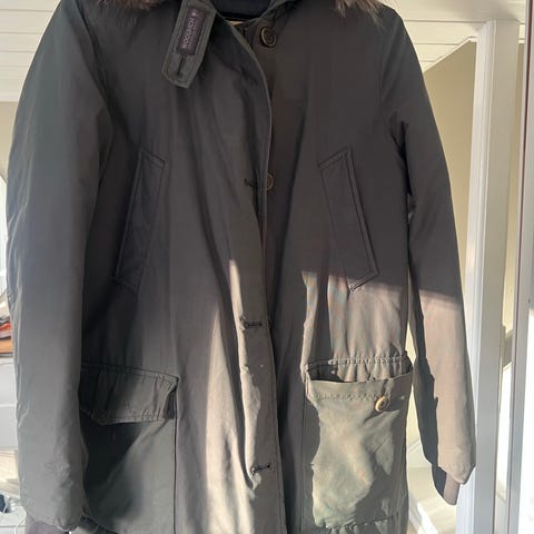 Varm og god jakke i str. M. Fargen er mørkeblå. Selges da den har stått ubrukt 2 vintersesonger. Vanlige bruksmerker.