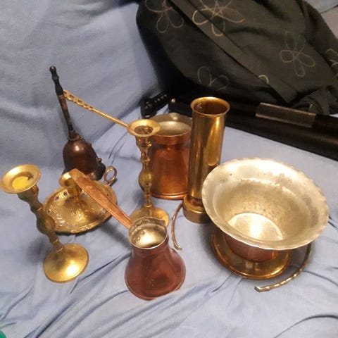 Vintage kobber messing kjøkkenutstyr og Viking i kobber