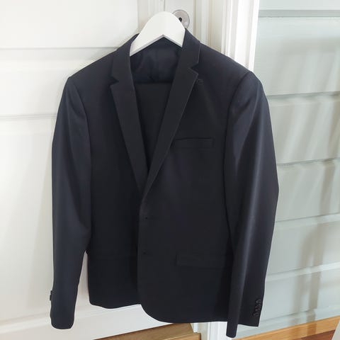 Dressen sitter veldig pent på. Fint stoff. Dressbuksen har strikk innvendig i livet for justering