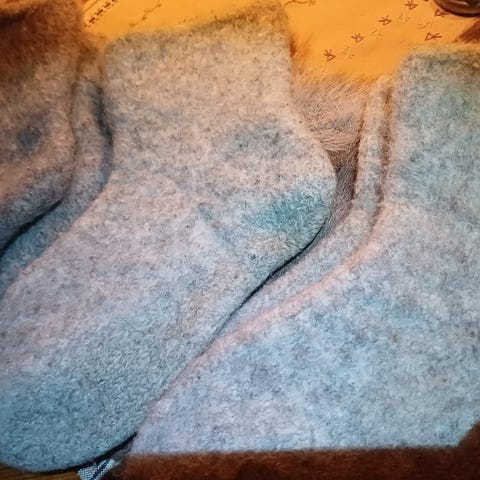 Selger 3 par ullsokker/tv-sokker/nattsokker / gjestesokker eller hva du måtte ha behov for. Veldig greie å ha i vesken og lettvinte å ta på seg. 60 kr/par eller alle 3 parene for 150 kr. Se bilder for ca.str. Sender gjerne mot forskudd av vare+porto... Se også mine andre annonser, bl.a. både garn og sokker.