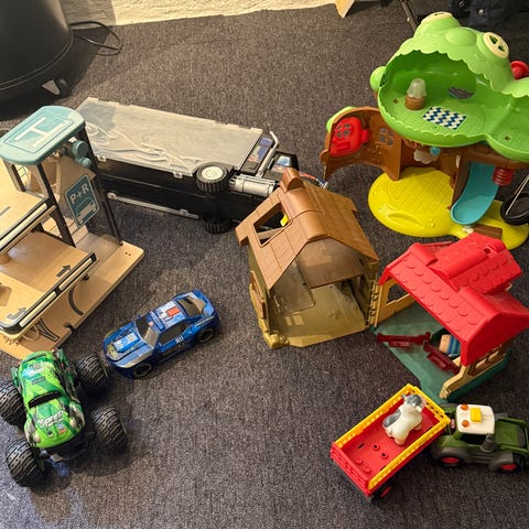 Div Playmobil: bondegård/park, sjørøverborg, dyrlegestue og stor pengetransportbil. Satte ikke sammen alt tilbehøret, hver «pakke» inneholder mange små detaljer som er gøy for barna å leke med.