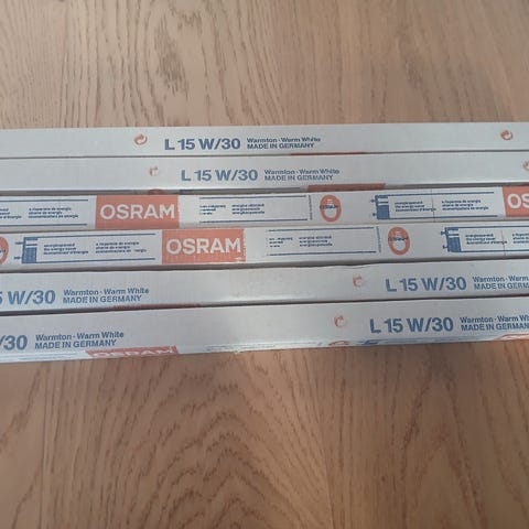 Selger 2 ubrukte Osram LED T8 604mm og 6.6W lysstoffrør med startere. Disse leverer720lm på 3000K(varmhvit lys).