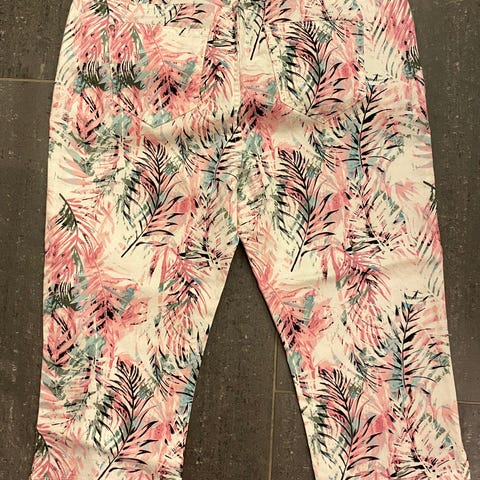 Kul capri/høyvannsbukse fra Only selges rimelig. Påsydd pynt som gjør buksa spesiell og iøyenfallende. Str. 32 i livet. Lite og pent brukt.