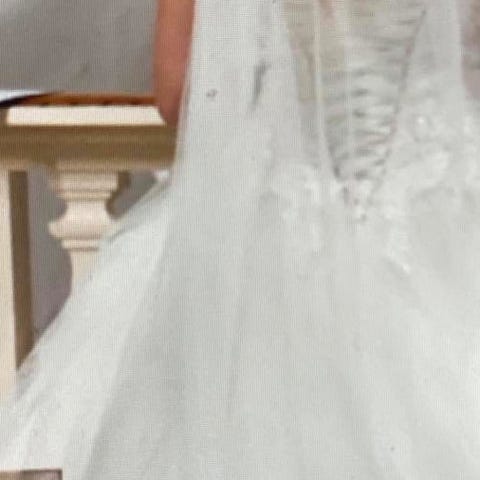 I have a beautiful wedding dress with Italian lace. Handmade, shining beautifully in the sun. It is tied on the back so can be adjusted.