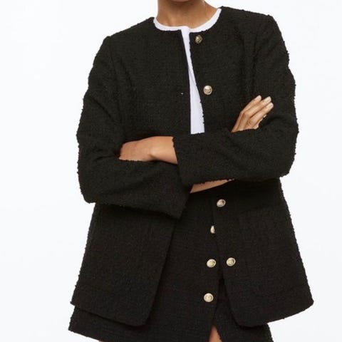 Jakke strukturvevd sort med gull knapper strl. L tweed