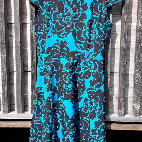 Grønn og turkis sommerlig 70s swirl / ripple kjole fra Dollskill, størrelse medium. Halterneck med åpent rygg. Brukt en gang.