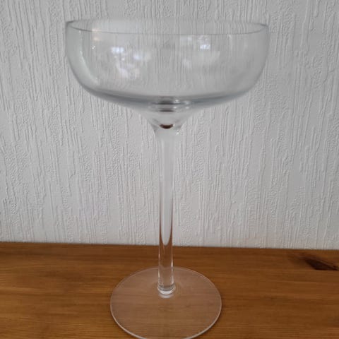 Har noen få små riper inni glasset på ene siden, da jeg har brukt et glassfat oppi for å ha lys på. Vises ikke mye. Se 2 siste bilder. Er ellers meget fin og som ny. Høyde 40 cm.