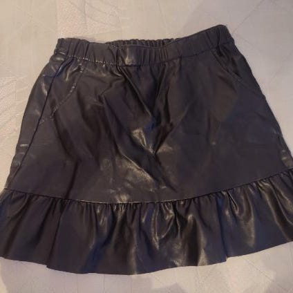 Sort skjørt i skinnimitasjon, meget pent brukt-som nytt, str.164, fra H&M. Knappene kan åpnes hele veien