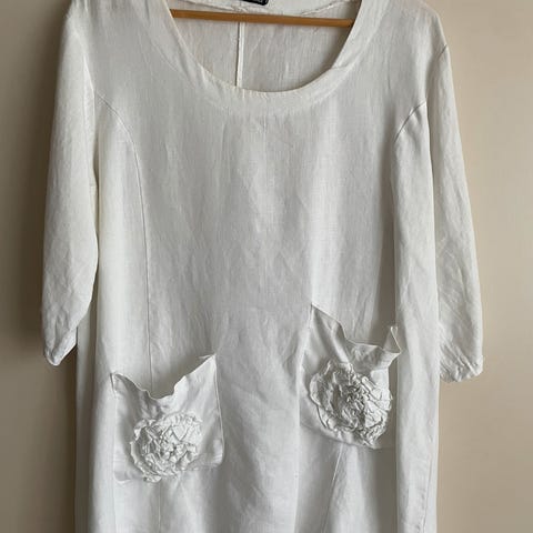 Ubrukt italiensk sett bukse og bluse i 100% viskose. Onesize m/tag. Lett og luftig. Buksa har strikk og snøring i livet med stikklommer i sidene. Lange bein. Style sammen eller hver for seg, God på str og kan fint brukes av XL, Nypris kr 1.798,-. Pris er satt.