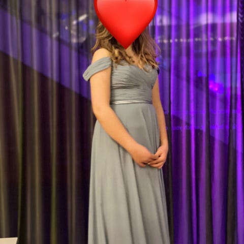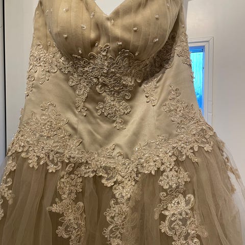 Nydelig kjole, brukt en gang. Det er krone øverst og tyll nederst, den sitter veldig fint.