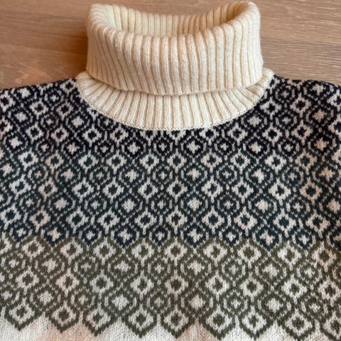 Denne genseren har et unikt pustende og isolerende materiale laget i deilig norsk ull. Behagelig ribb nederst på kropp og ermer gjør at den sitter fint på kroppen. Strikket i en tofarget Jacqard. Denne kommer du til å like i vinter!