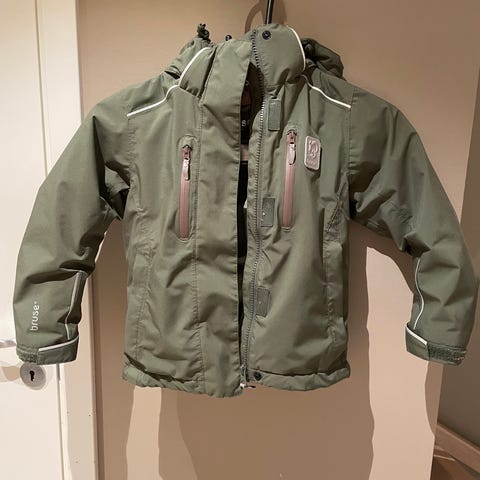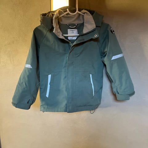 Utrolig god, lett vattert, jakke som vi har vært super fornøyd med og har kjøpt igjen. Modellen heter Birk og er vann- og vindtett med 15.000 i vannsøyle. Veldig mykt og bevegelig materiale. Holder godt på varmen til å være så tynn og har vært brukt ned mot 0-4 grader. Ingen synlige flekker eller hull. Praktiske refleksdetaljer.