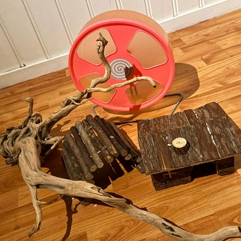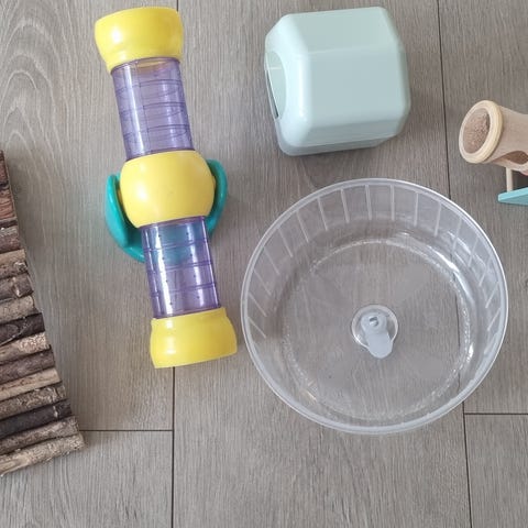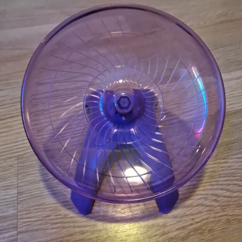 Løpehjul til hamster selges. Kjekk løsning ved at man kan feste det til buret med «kroker». 16cm i diameter. Må hentes i Åsgårdstrand eller Revetal.