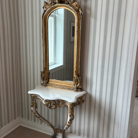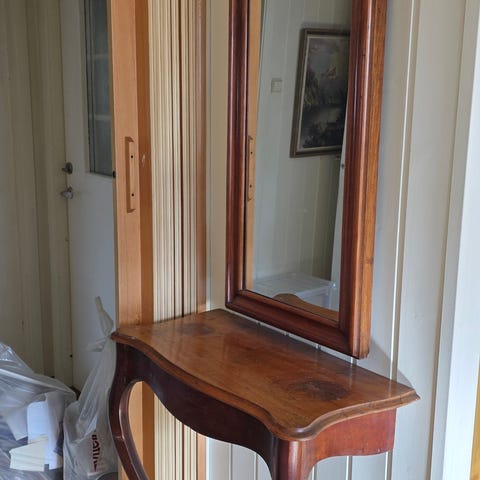 Gammelt bord og speil selges. Beskrivelse under bilder.