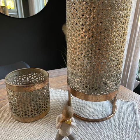Nydelige lysestaker 15,5 cm høye og serviettholder og en liten pen skål. Skålen kan brukes til mye, sukker, syltetøy el til smykker❤️ De er etter min mor som døde i 1996, og hun hadde de bare framme til pynt. Nå har de stått inne i et skap hos meg, og blir ikke brukt😥 Bedre at noen andre kan ha glede av de:-) Kan hentes el jeg sender
