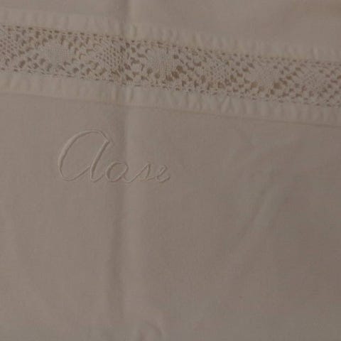 Har flere store og små "hvite" putevar. Har 5 små hvite putevar med brodert A på.