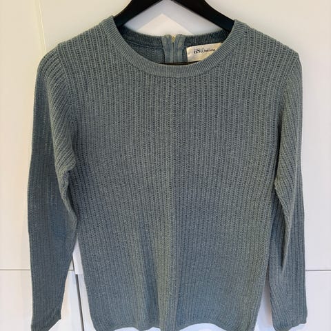 Iis Woodling genser med pynteknapper (glasslignende). Størrelsen står ikke på, men måler 64 cm fra armhule til armhule. Kan passe flere størrelser alt etter hvor oversized man ønsker den ( S ,M, L, XL og 2XL). Hentes eller sendes mot frakt.