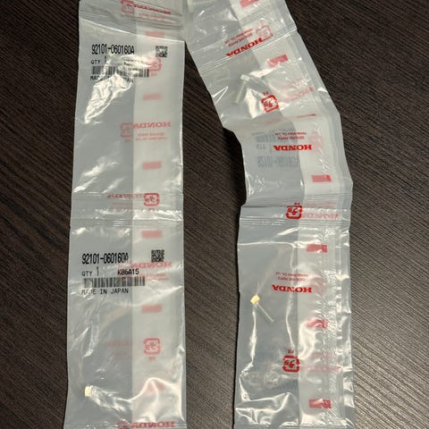 Kan passe på andre merker også, sjekk målene. Selges pr. stk. Erstatter del Honda: 90102-732-010, 90114-SA0-000