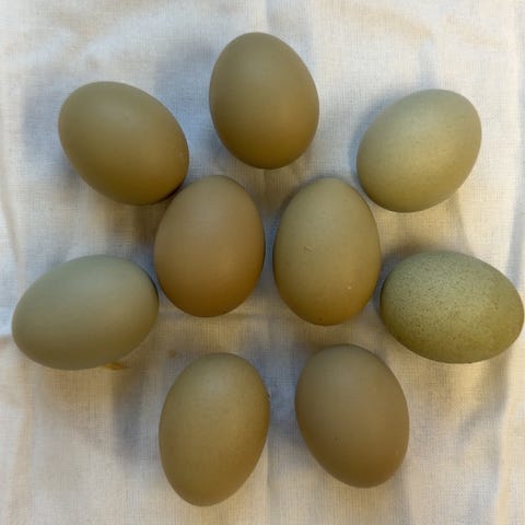 Selger også rugeegg kr 40/stk.