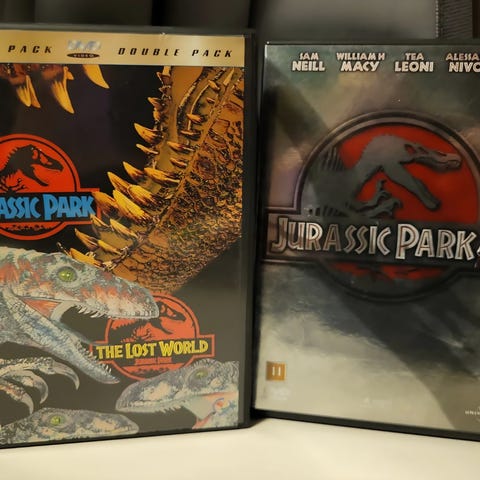 Meget pent behandlet samleboks med de tre første filmene I filmserien om Jurassic park.
