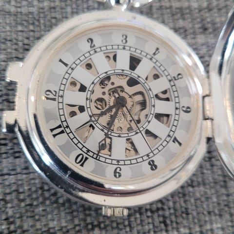 Flott Gullfarget Lommeur med lenke på 80cm 40 cm dobbelt , uret er 4.5 cm i Diameter og 1,4 cm tykkelse. Blankt og fint på utsiden og fint sisselert inne i lokket. Uret går på batteri og er flott å se på. Det selges for 349.- sender gjerne i post mot porto og bruker Vipps/Straksbetaling Bank