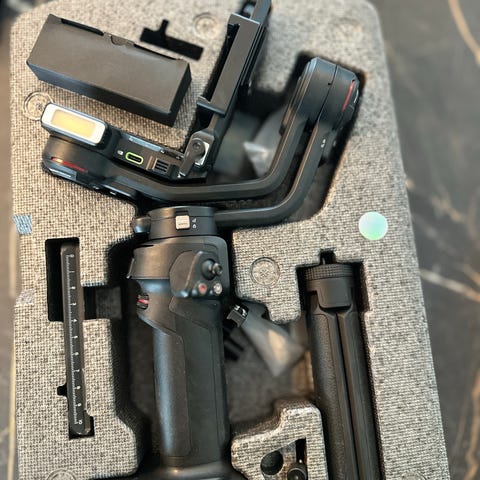 Zhiyun Weebill 2 Pro Plus - Den ble kjøpt helt ny, men hadde en feil som gjorde at den ikke slo seg på. Den ble sendt tilbake til leverandøren, hvor hovedkortet og batteriet ble byttet. Nå fungerer den helt fint og som normalt.