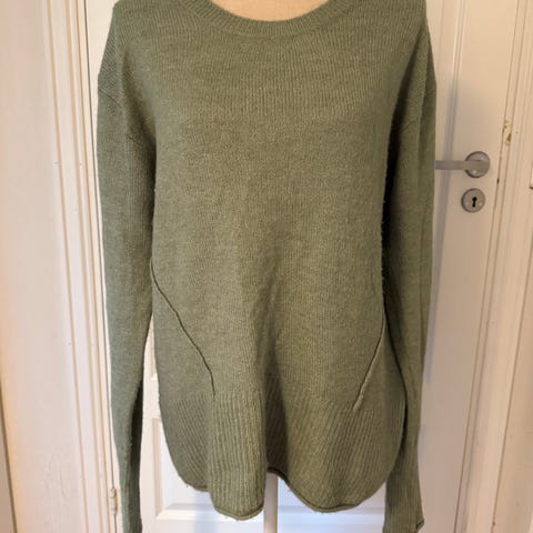 Høy hals ,noe slitt ,blandings stoff ,lang og tykk genser .se gjerne mine andre annonser for flere klær mm.ryddesalg. kan sende flere varer i samme pakke så sparer du porto