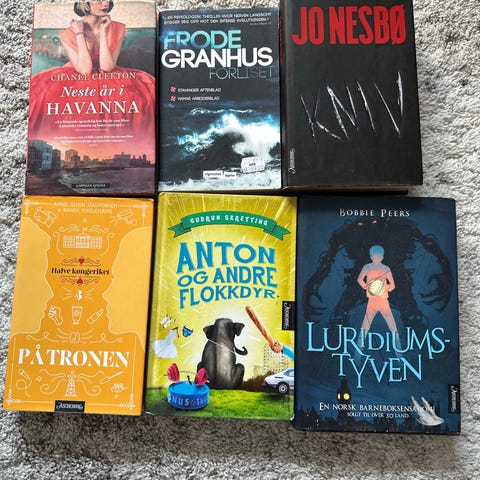 Nye, uleste bøker selges for 30kr pr.stk. Novellesamling i 3 bind av Torborg Nedreaas selges for 90kr.