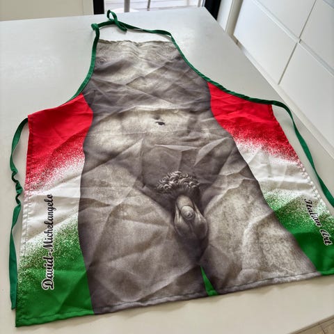 Sett med forkle kjøkkenhånkle grytekluter og grillvotter.