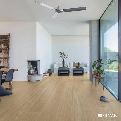 Med integrert 1 mm anti-støy dempende underlag. SPC (Stone Plastic Composite); har en stiv kjerne bestående av en blanding av kalkstein og stabilisatorer. Svært slitesterke gulv som i tillegg til private hjem også er velegnet for kommersielle bruk med høy trafikk.