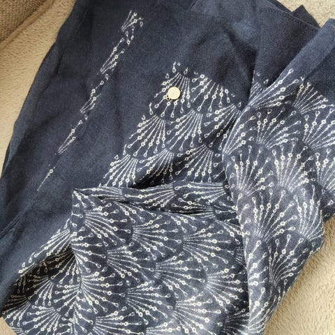 Marinablå base med Beige og Rosa Broderi